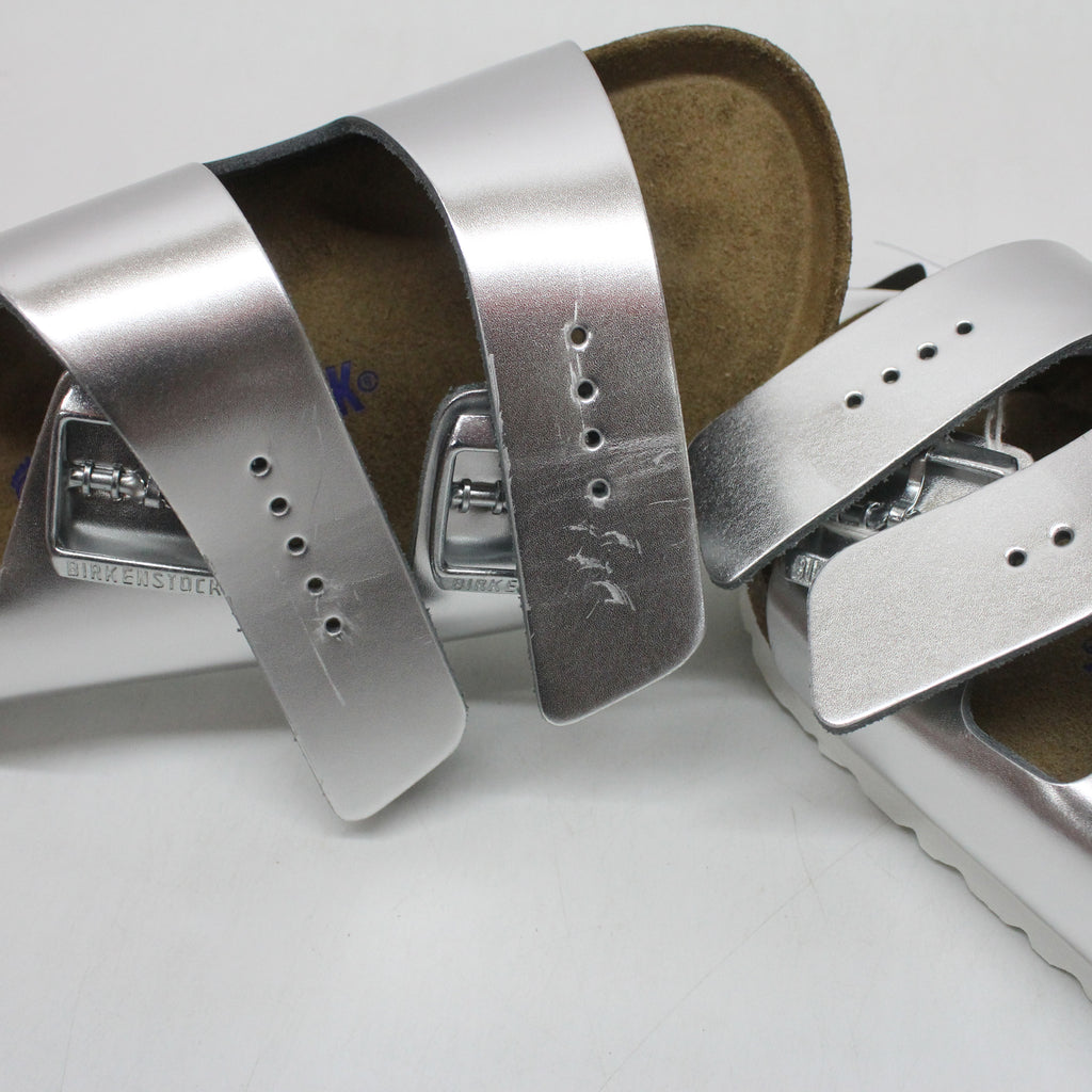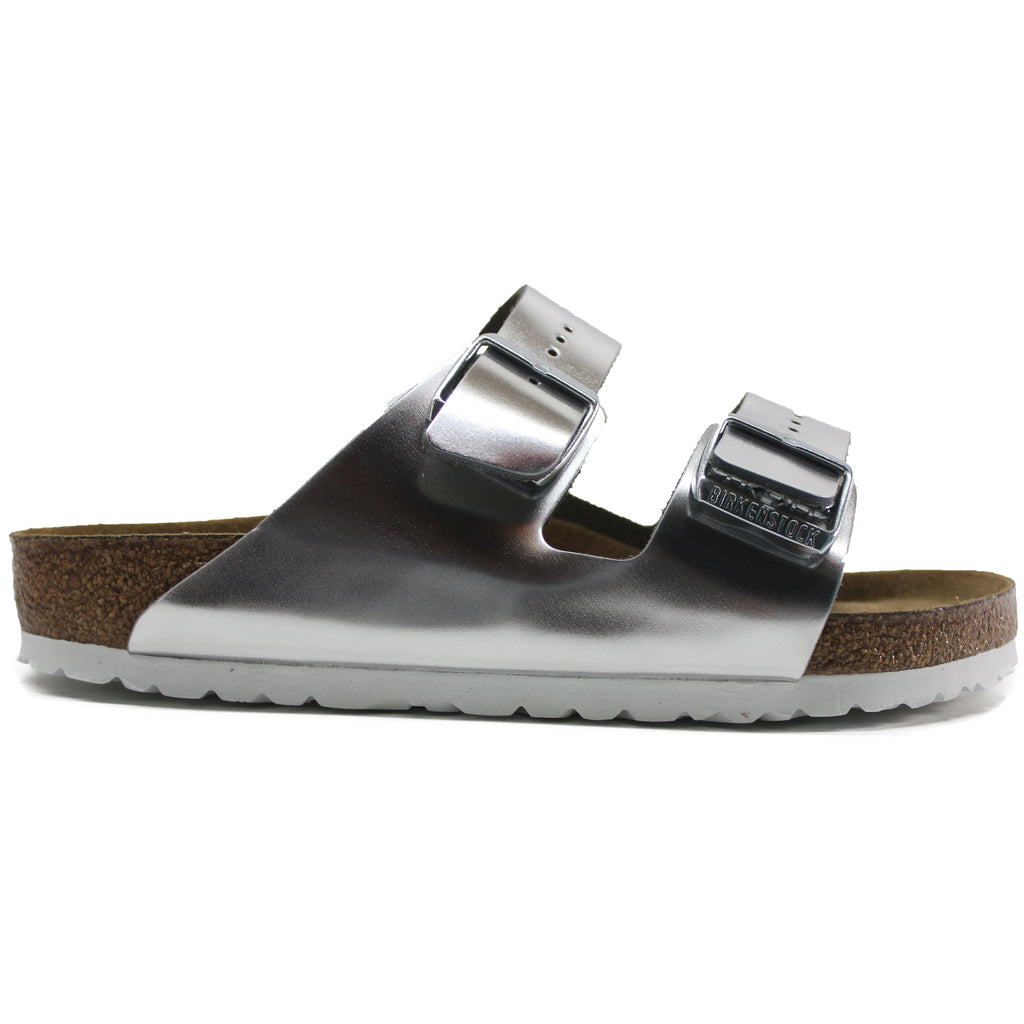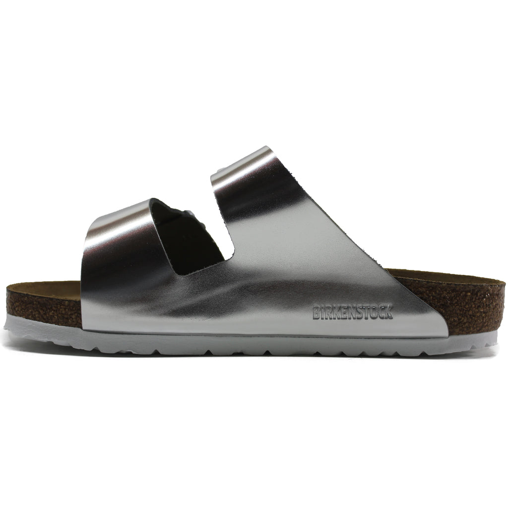 - Premium natural leather upper with metallic finish.