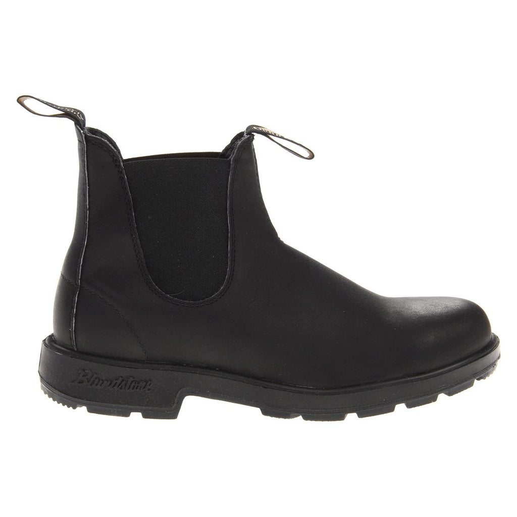 The black Blundstone 510 men's Chelsea boots feature a premium leather upper. Durable boots feature a removable XRD technology insole for shock absorption and to reduce impact on feet and joints. Polyurethane midsole for extra comfort. Thermo urethane outsole is highly resistant to hydrolysis and microbial attack and offer grip on any surface. Tough boots are oil, acid and organic fat resistant. Ergonomically engineered toe spring reduces fatigue. Gussets on both sides for easy slip on and off.