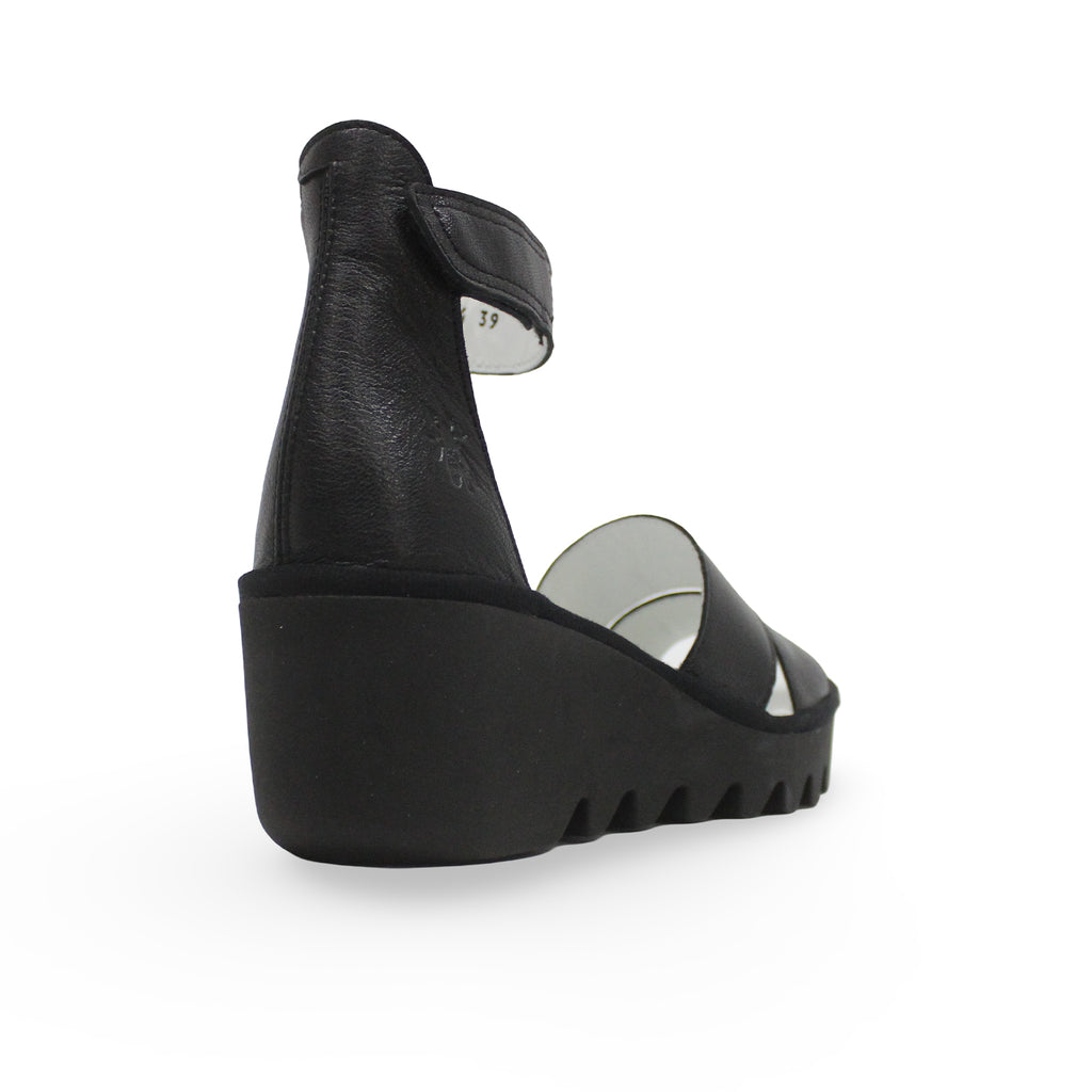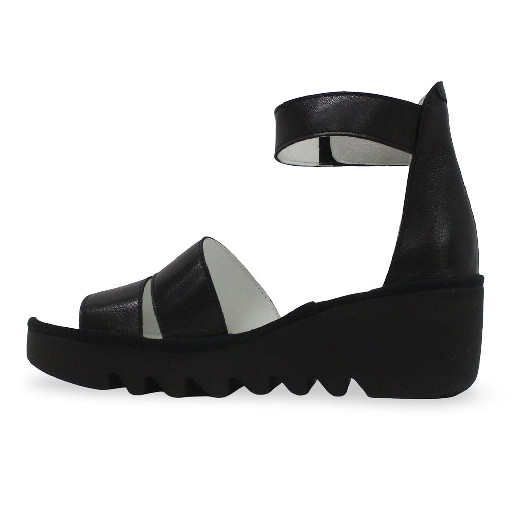 Fly London BONO290FLY Mousse Leather Women's Heels Black Sandals