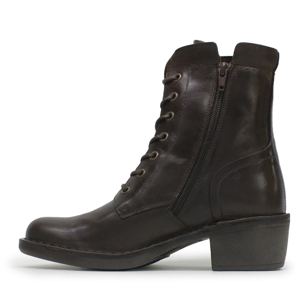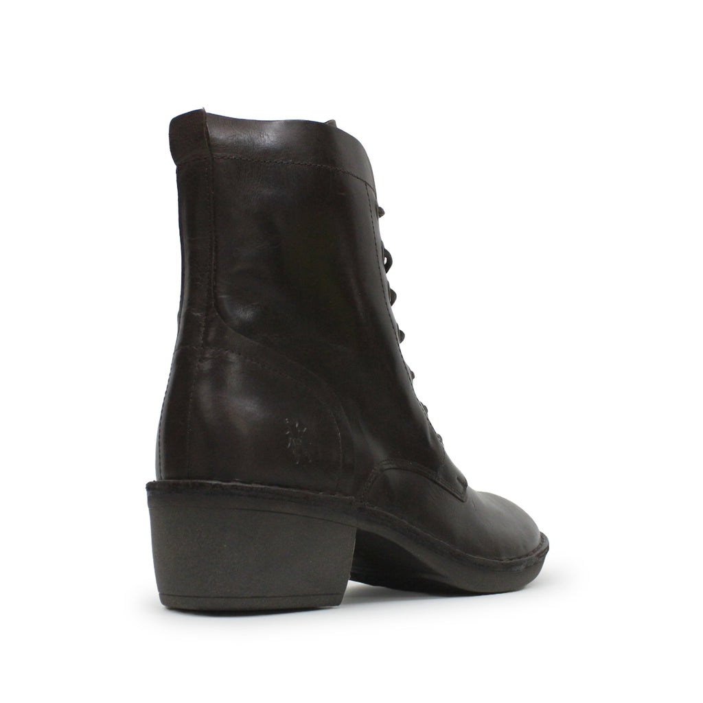 Fly London MILU044FLY Rug Leather Women's Lace Up Dark Brown Boots