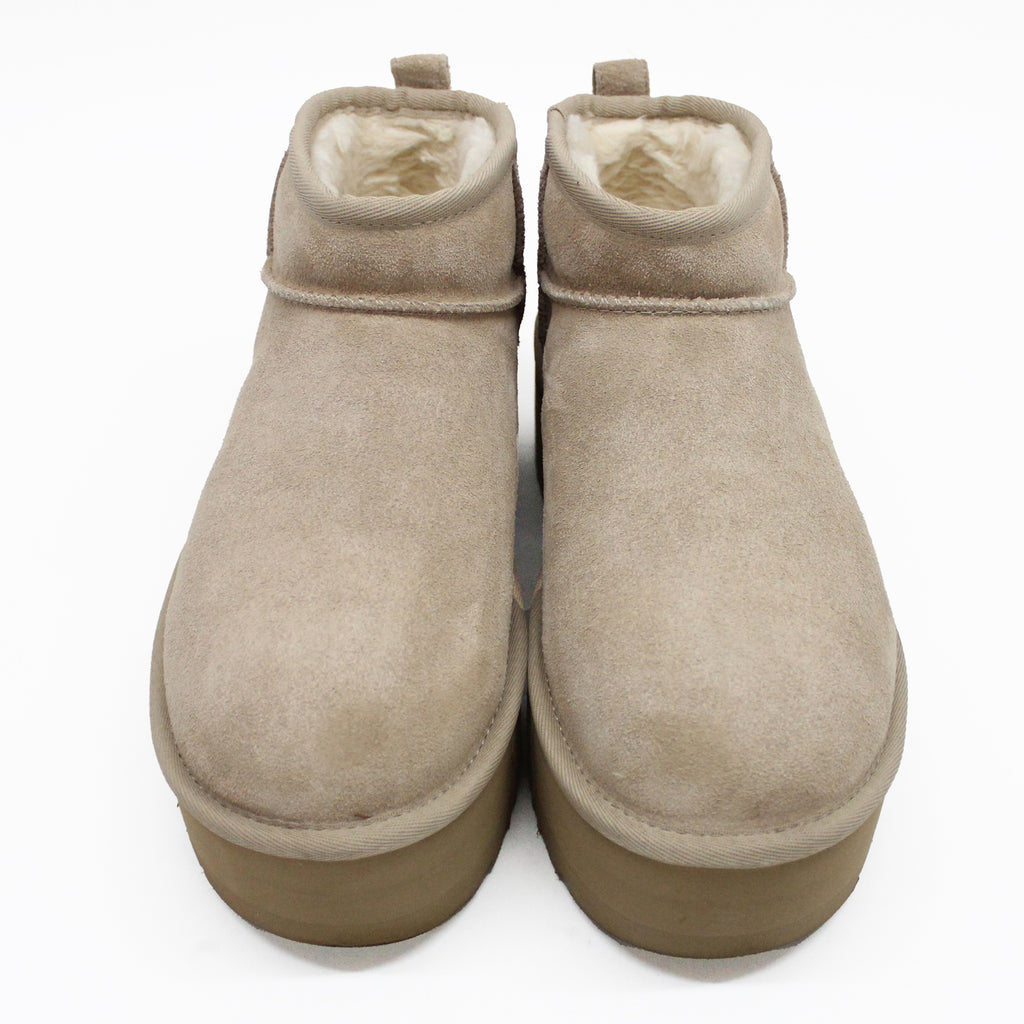 The UGG Classic Ultra Mini Platform elevates our emblem in a contemporary manner. It's created with the same rich suede as the original and our wool blend for distinctive softness, and it offers a bolder style than ever before.